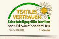 Šatky Storchenwiege sú pravidelne kontrolované nezávislým skúšobným ústavom. Aj bavlnené vlákna sú pri ich výrobe pravidelne kontrolované. Používané farby sú netoxické a bez ťažkých kovov. Šatky vlastnia certifikát Öko-Tex Standard 100 (každoročne obnovovaný), ktorý je zárukou zdravotnej nezávadnosti pre deti.